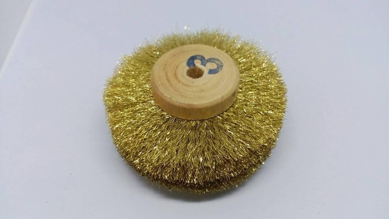 Щітка латунна для поліровального верстата з дерев'яною втулкою.