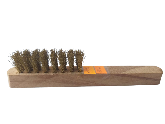 Щітка для змітання 3-х рядна на дерев'яній ручці, латунна, м'яка h-16мм
